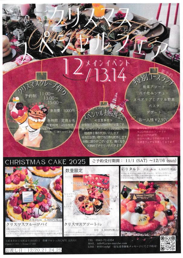 12月13日と14日に久留米市田主丸の樹蘭マルシェさんで開催されるクリスマススペシャルフェアに出店させて頂くことになりました!!