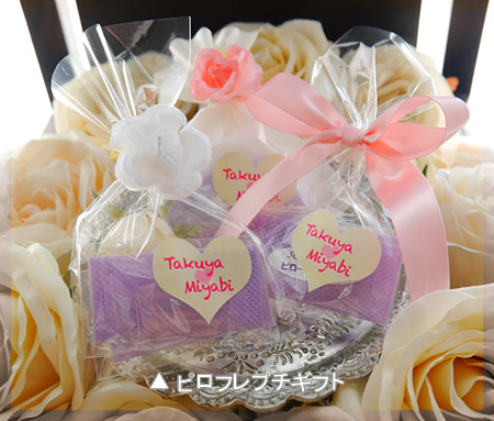プチギフト用の袋には印刷の代わりにお二人の名前ラベルを貼る事も可能です。